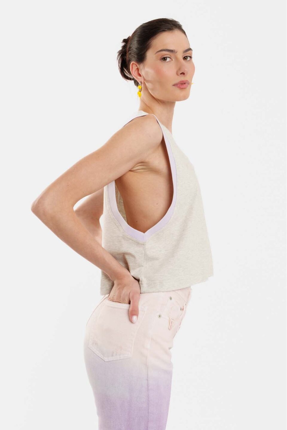 Woman Sleevless T-Shirt With Embroidery – Kali Grey