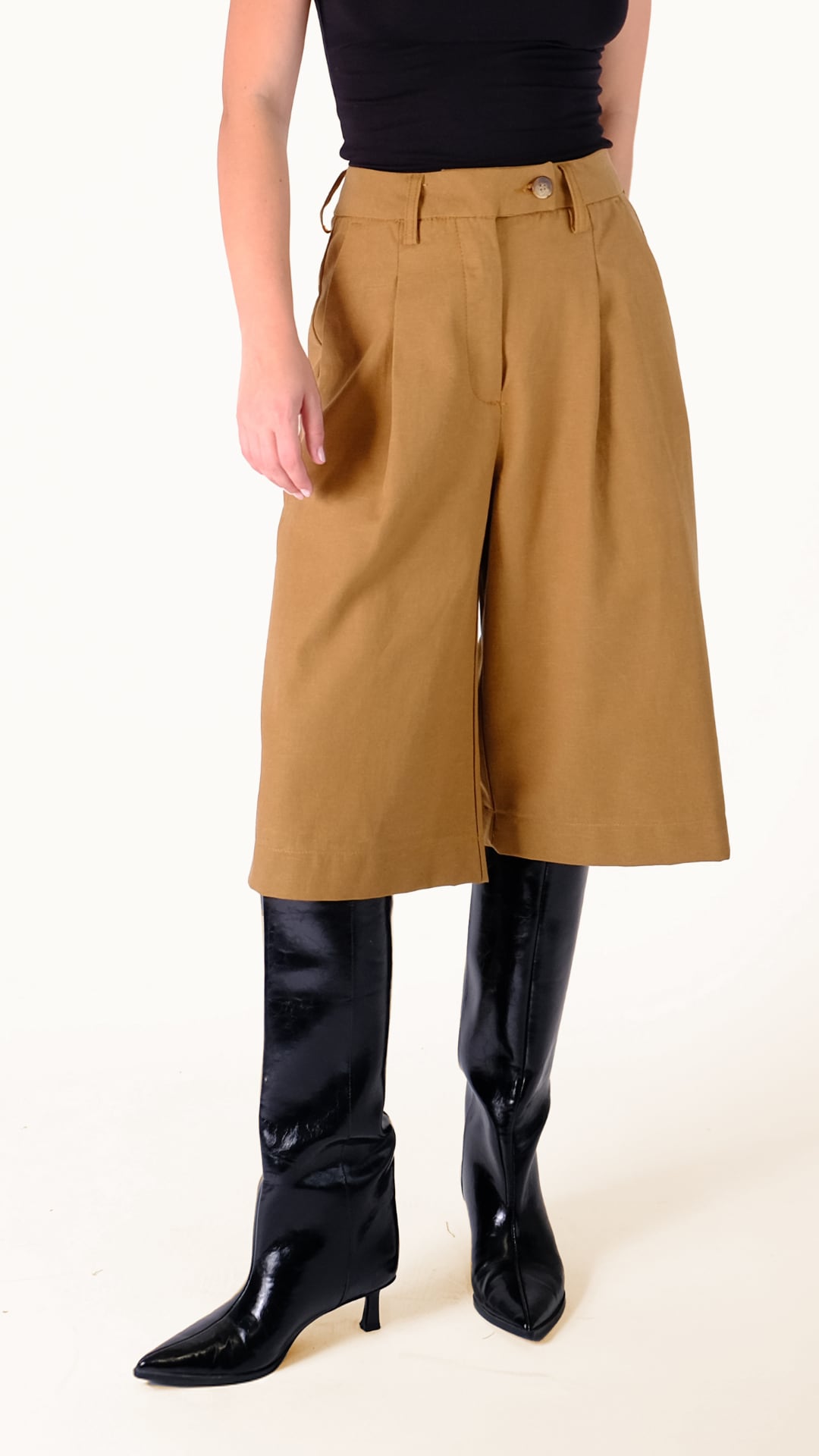 Η Lilly ξεχωρίζει για τη ψηλόμεση εφαρμογή της και τη δομημένη culotte γραμμή της. Το ύφασμα πέφτει ομοιόμορφα, δημιουργώντας μια καθαρή, κομψή εικόνα που παραμένει άνετη όλη μέρα. Το μήκος στο mid-calf προσθέτει μοντέρνο χαρακτήρα και ταιριάζει άψογα με sleek μπότες ή sneakers.