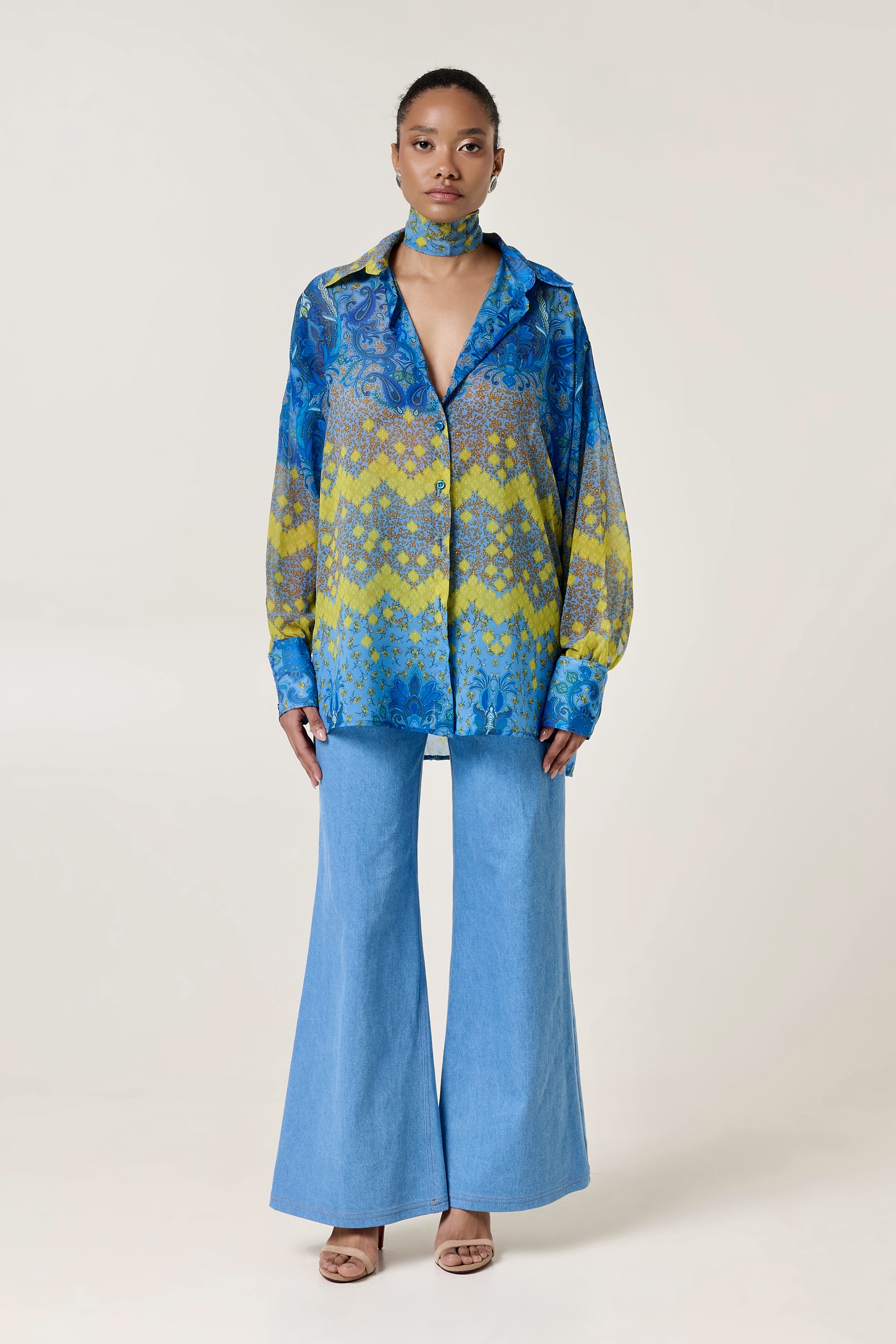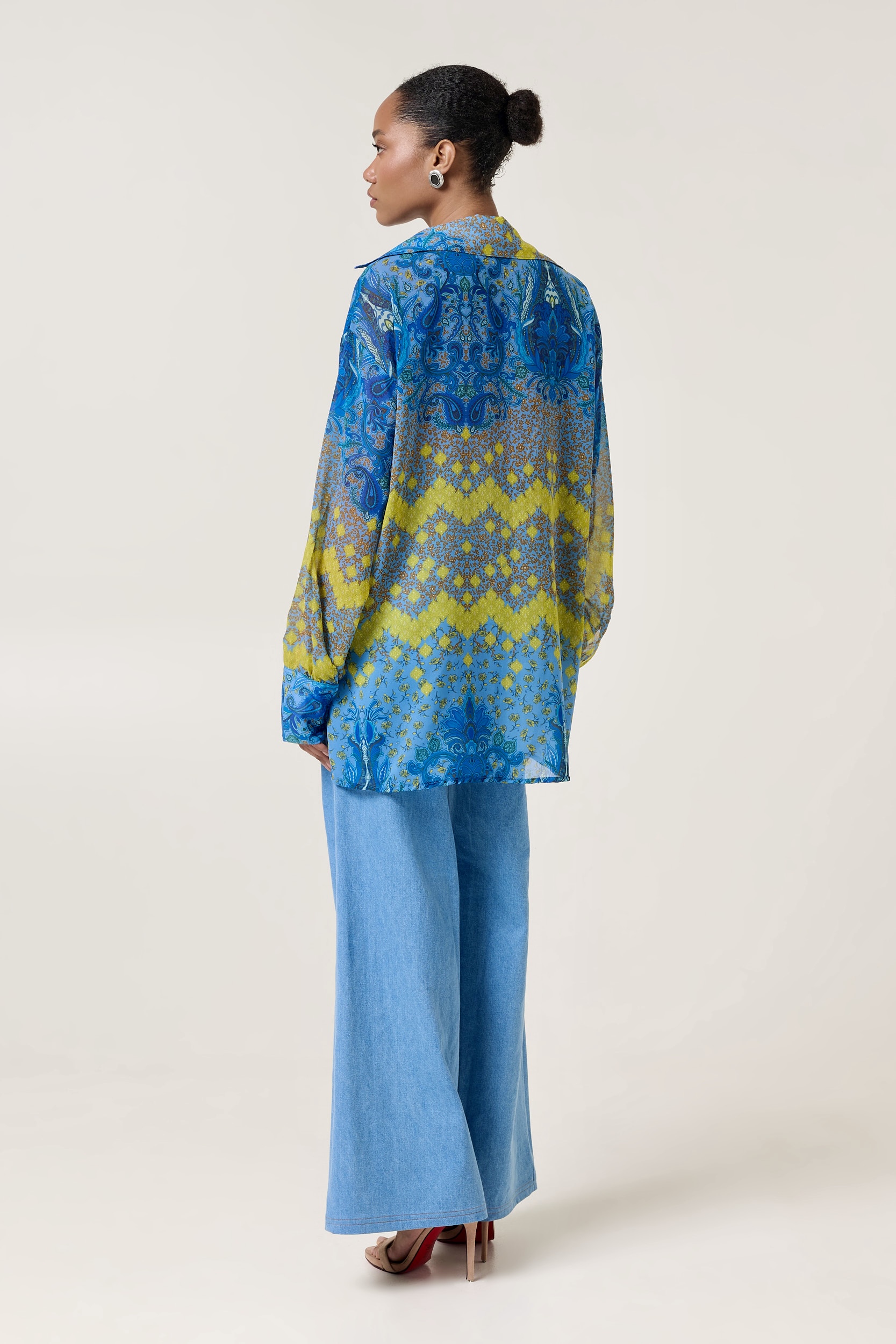 Το OPHELIA OVERSIZED SHIRT της EVELEYA SS26 ξεχωρίζει για τον δυναμικό και σύγχρονο χαρακτήρα του, μέσα από ένα ιδιαίτερο μοτίβο σε αποχρώσεις του μπλε και του κίτρινου.
