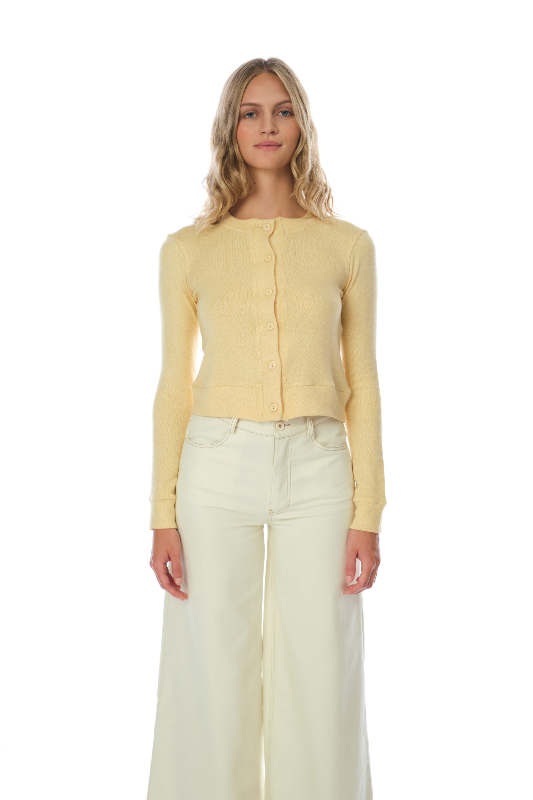 A timeless cardigan with front button fastening, crafted from exceptionally soft yarn that feels like butter. Warm, cozy, and made with premium quality, it’s perfect for layering throughout the colder months.
