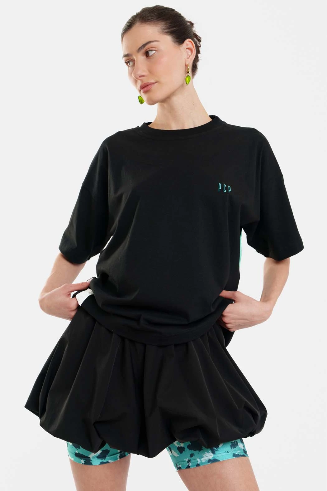 Woman Short Sleeve T-Shirt with embroidery – Aria Black